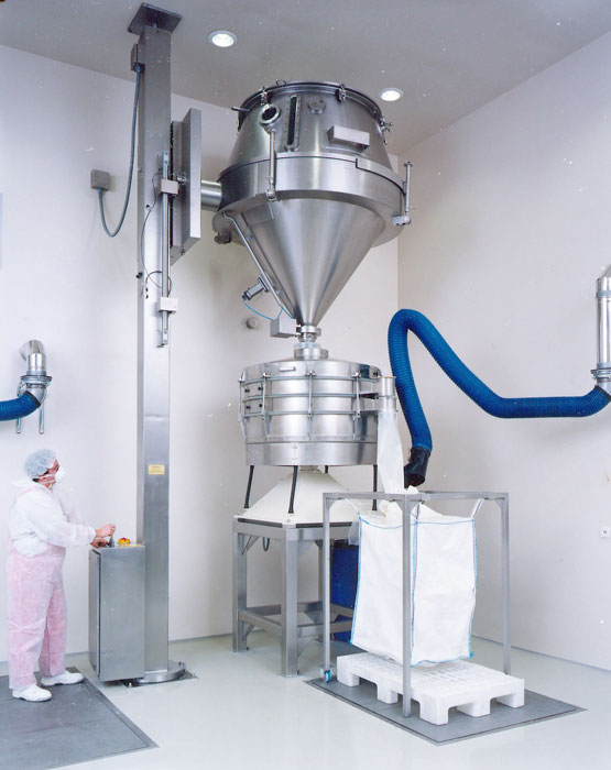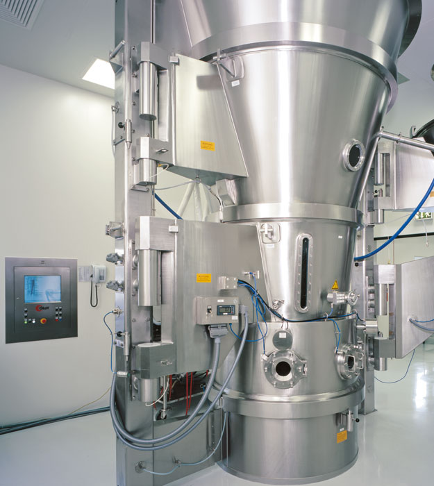 Feinchemikalien können auf dieser Anlage ebenso hergestellt werden wie kosmetische Produkte oder Detergenzien. Neben der Wirbelschichtgranulation lassen sich auch kompakte Granulate und Pellets produzieren. Grobe Ausgangsstoffe werden vor der Granulation mit einem Sieb homogenisiert, um eine gleichmäßige Partikelgröße zu gewährleisten.